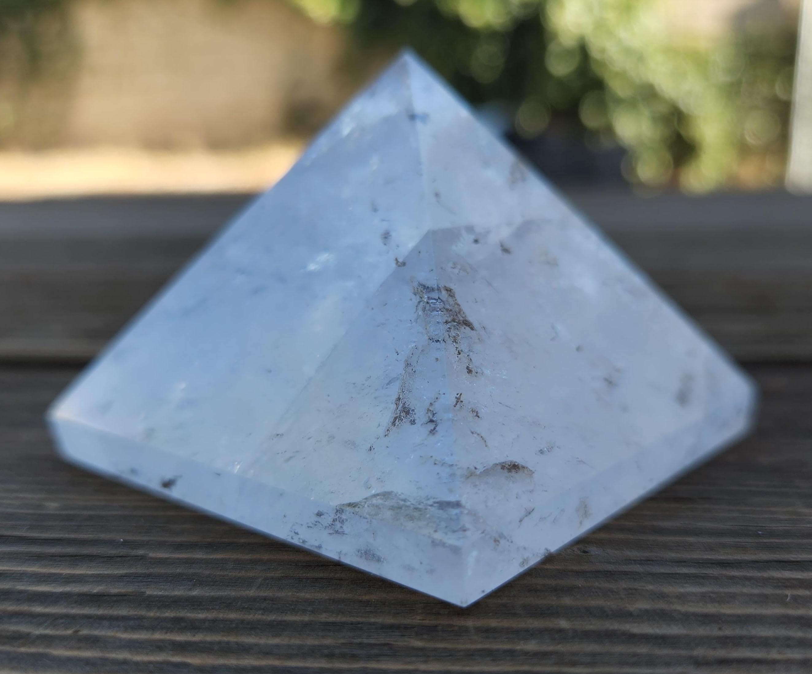Since ancient civilizations, pyramids have been a source of focused energy and power. Pyramids amplify and then tightly focus energy through the apex. A crystal pyramid is a powerful tool that can be used to draw off negative energy and blockage from the environment and to infuse positive energy. A gemstone pyramid is also used to enhance and focus the properties of the stone it is made of. Pyramids attract energy, transform it and release it into their environment. Pyramids can be used to channel, cleanse, and direct energies throughout your home or sacred space. Anywhere where there is a pyramid, energy won't become stagnant. Crystal pyramids are also very powerful center stones for crystal grids.