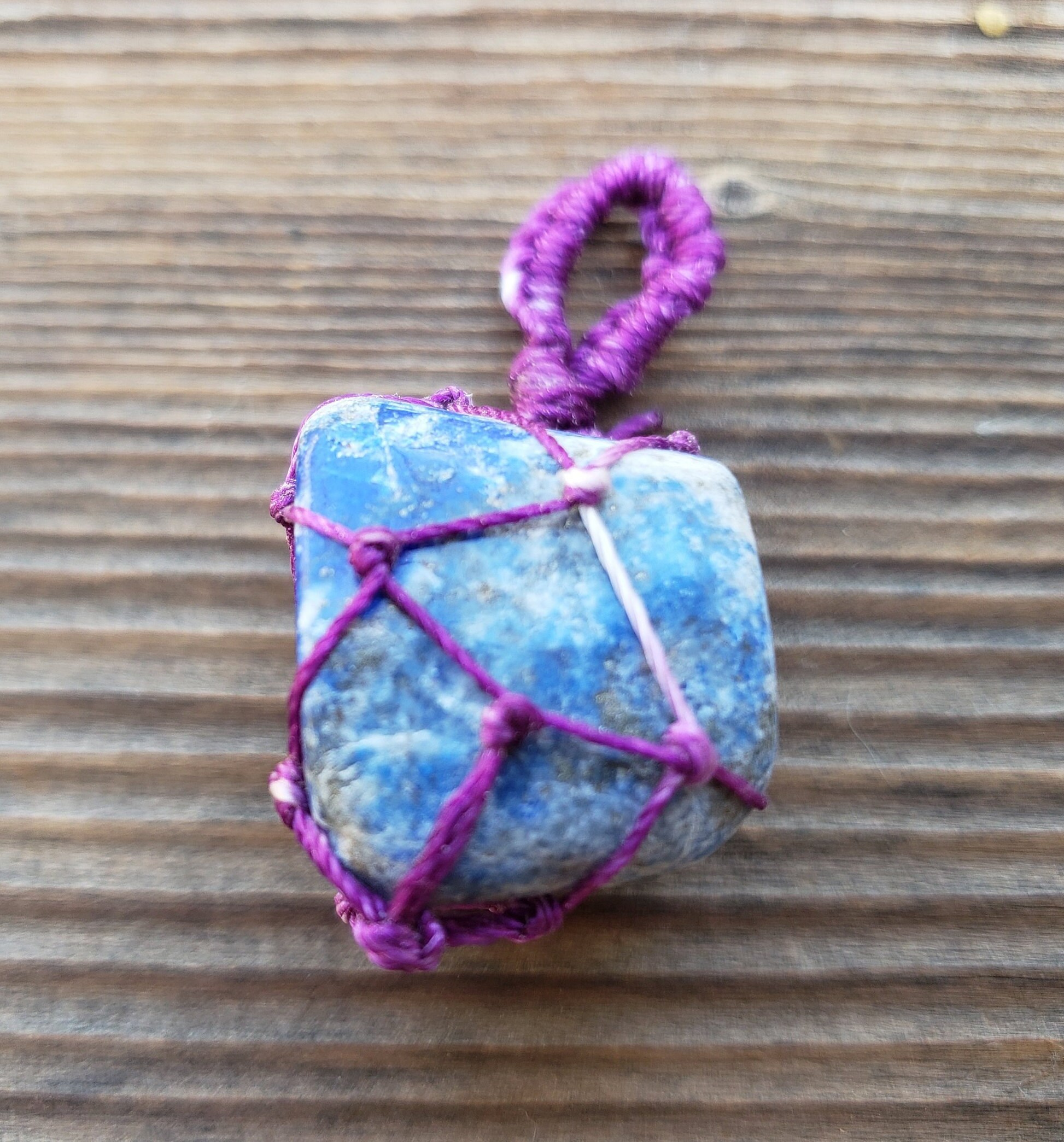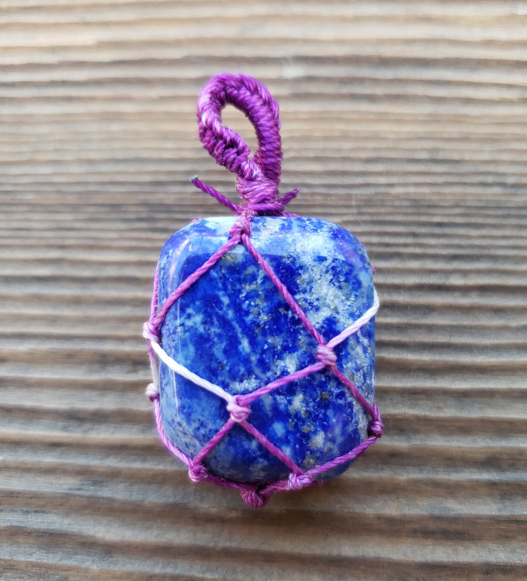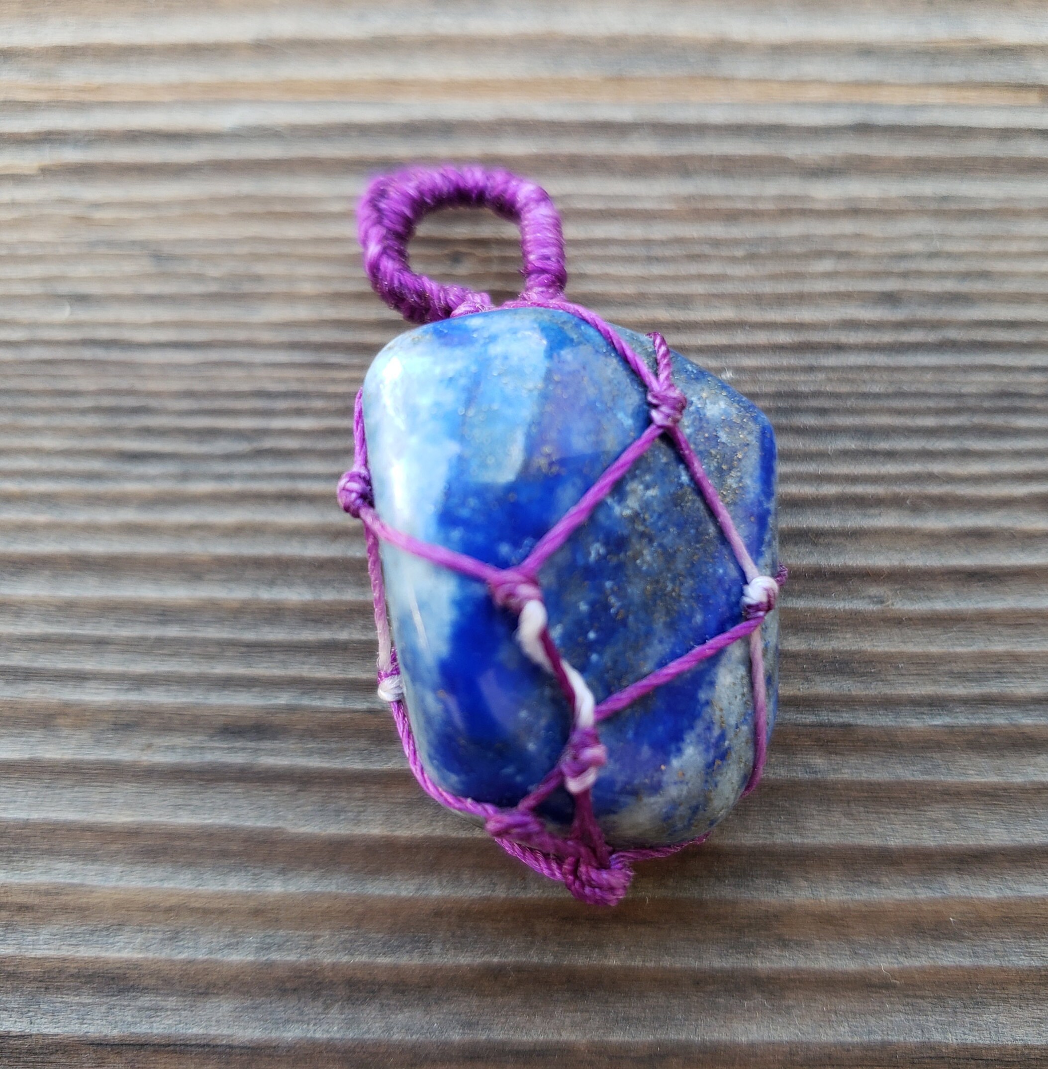 LAPIS LAZULI NETTED (MACRAME) TUMBLED STONE PENDANT GEMSTONE